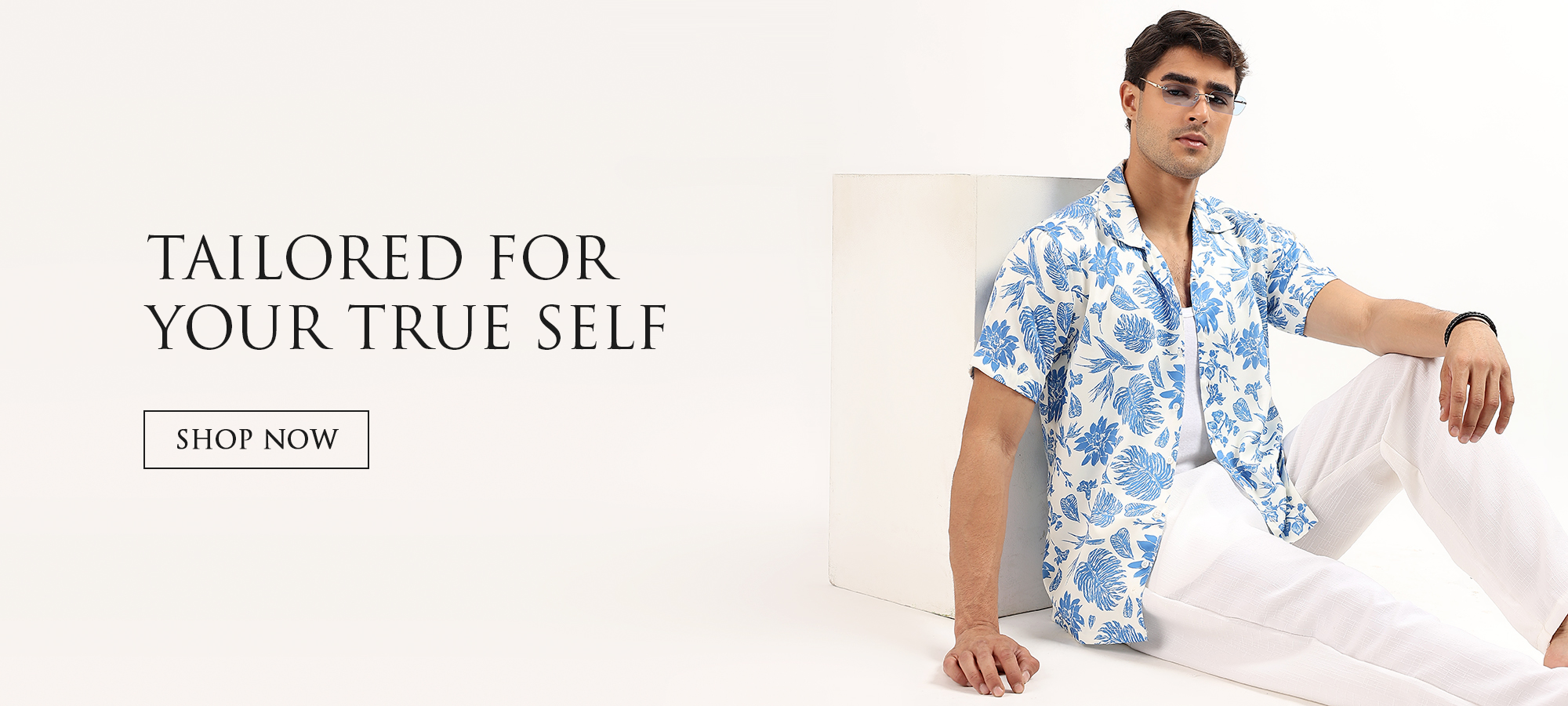 Cream-Blue Ikat Cuban Collar Resort Shirt